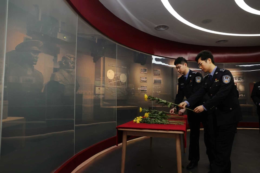 近日,上海市公安局普陀分局警史馆风雅启用。为悼念改进英烈、放纵剖判红色精神,就在本日,分局团委也组织后生民警代表来到警史馆内的钱凤岐、刘家栋义士雕像前,敬献花篮、肃立致哀,高峻举行“悼念公安英烈连续普陀荣光”晴明祭扫追思步履,以寄哀想、传承精神。