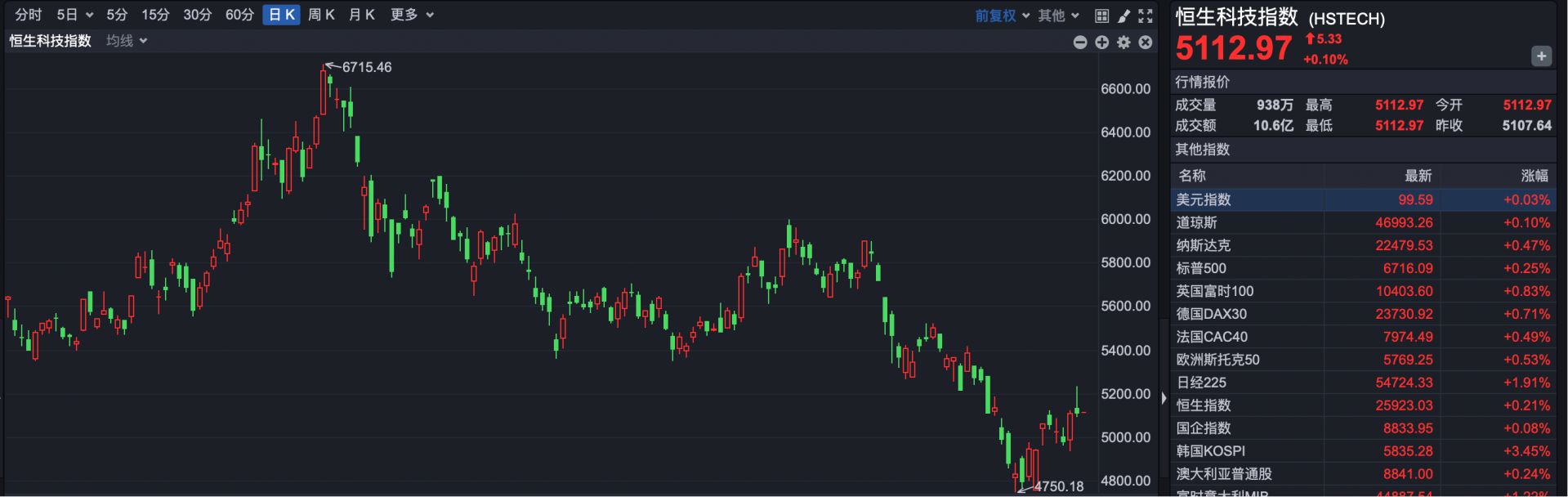 恒生科技指数开盘报5112.97点,高潮5.33点,涨幅0.10%。