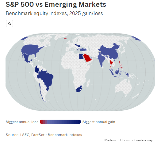 自特朗普 “沉静日” 晓谕以来,巴西、英国、日本等国基准指数推崇优于标普 500 指数,收成于投资者(尤其国外投资者)寻求散播投资、镌汰对好意思国收益的过度依赖。