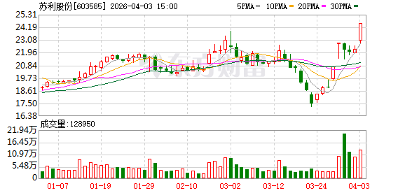 苏利股份(603585)本日涨停,全天换手率7.06%,成交额3.06亿元,振幅8.12%。龙虎榜数据默契,机构净卖出1247.82万元,营业部席位共计净买入1902.63万元。
