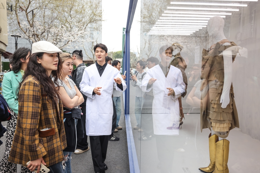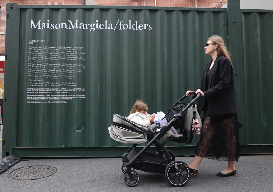 法国前卫品牌Maison Margiela(梅森·马吉拉)将其绚烂性的解构好意思学,悄然融入上海雁荡路的春日街景之中。文文告记者 袁婧 摄