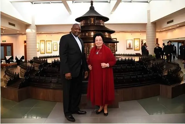 ● 陈丽华追随冈比亚共和国总统阿达马·巴罗参不雅紫檀博物馆,死后为紫檀制天坛祈年殿