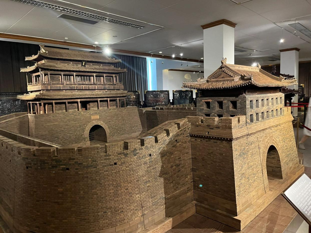 16座紫檀及阴千里木制北京古城楼,按1:10的比例,将正阳门、崇文门、宣武门、永定门等全部复刻出来,东谈主不错从城门洞解放相差,也能在城墙上驱驰越过。