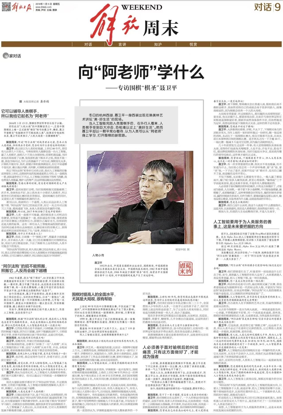 2018年1月5日,解放日报曾刊登对聂卫平的专访。今天,重读旧文,缅怀一代“棋圣”。