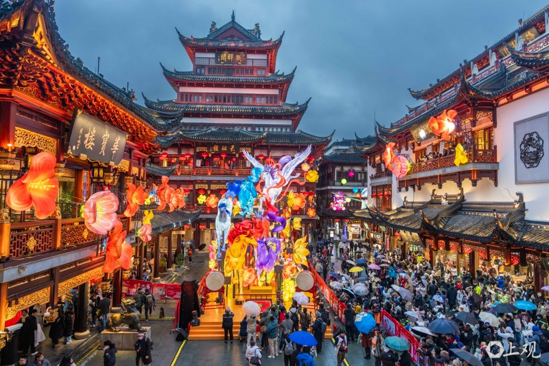 1月26日下午4点30分许,以“以梦为马,旷野生花”为主题的2026上海豫园民俗艺术灯会正式亮灯,开启为期36天的海派年味视觉盛宴。