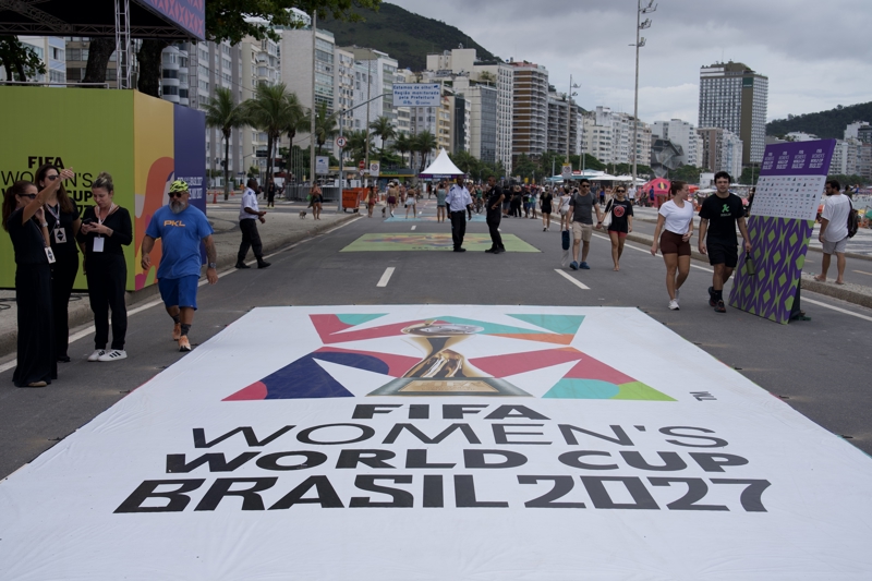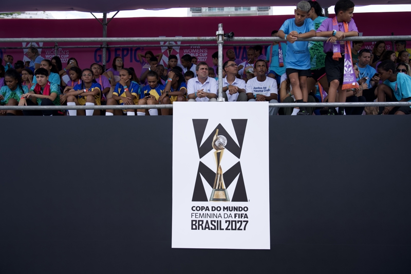 里约热内卢,2027年女足世界杯会徽和口号发布现场。新华社记者 周永穗 摄