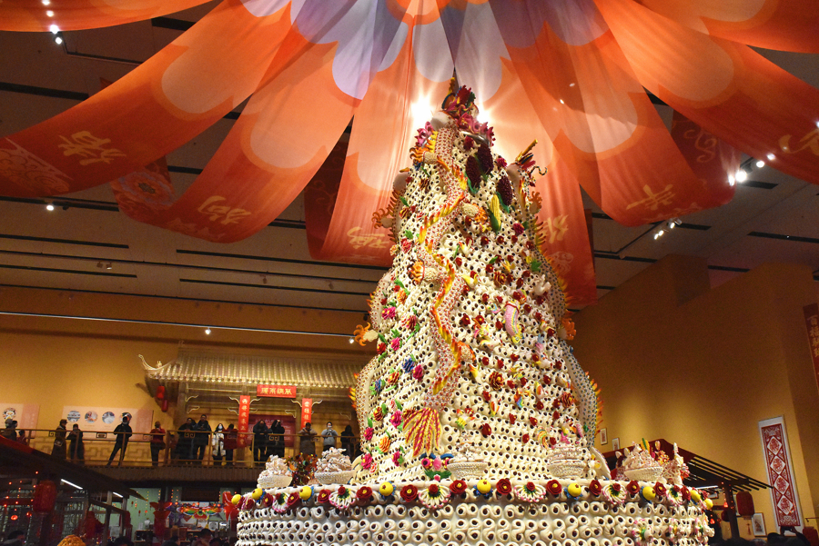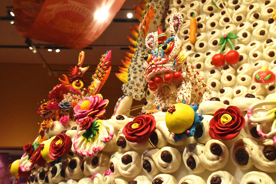 4.5米高巨型花馍山亮相中国工艺美术馆