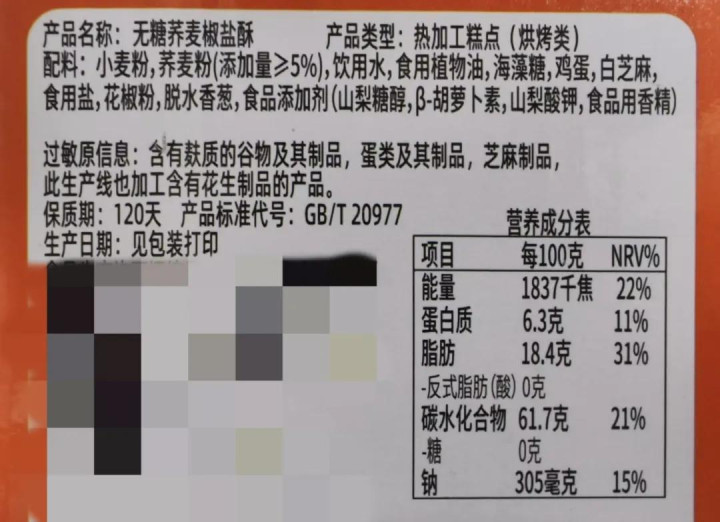 1.如果宣称“无糖”,但营养成分表中“碳水化合物”含量很高,或配料表中含有淀粉糖浆等,需保持怀疑;