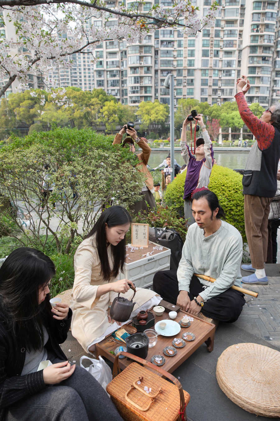 上海最好意思的赏樱季驾临,苏州河天安千树旁900米赏樱步谈樱花盛放,2026“千树樱花季”也随之开启。30多个樱花主题摊位包括文创、手作、轻食、微醺、植艺、萌宠等,眩惑了盛大市民搭客前来赏樱逛市场。