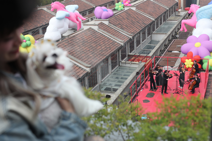 4月4日,第41届“上海之春”国际音乐节初度将舞台搬到胡衕屋顶。莫斯科国立柴科夫斯基音乐学院独奏家室内乐团,在滨港·今潮8弄百年石库门屋顶上奏响柴可夫斯基的旋律。