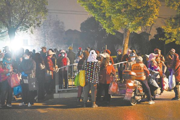 图说:凌晨5时左右,驿站门前的空地上已聚集了上百人。