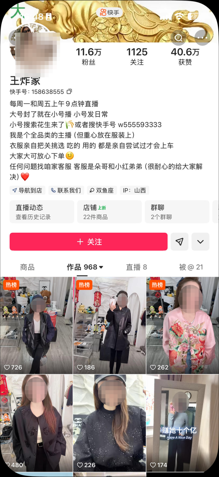 “花妹”与“王炸姐”默契近十年,是快手早期直播行业的同业者,“王炸姐”属兔,本年39岁。“咱们意识许多年,相干跟家东说念主同样,七八年前一齐去广州作念服装直播带货,那时代就知说念她躯壳扛得很阻遏。”“花妹”回忆,2026年3月9日本日,他像往日同样刷直播,点进好友“王炸姐”的直播间,“那时代她还在平常直播,坐得很稳,跟粉丝互动也平常,谁能思到半小时不到,东说念主就没了”。